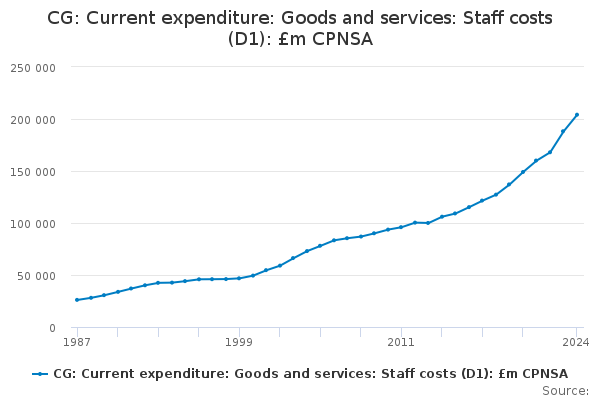 Download this time seriesCG: Current expenditure: Goods and services: Staff costs (D1): £m CPNSA