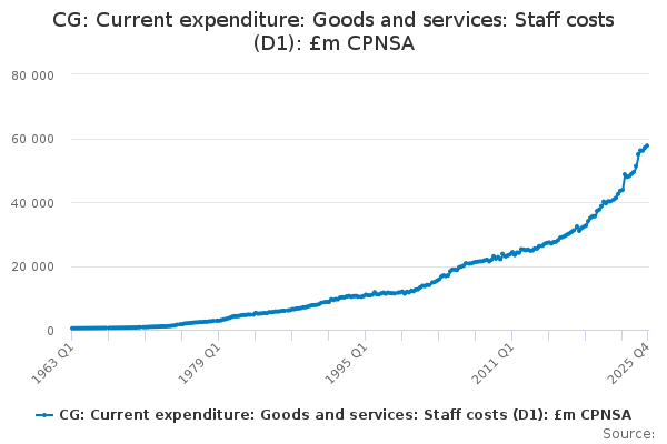 Download this time seriesCG: Current expenditure: Goods and services: Staff costs (D1): £m CPNSA