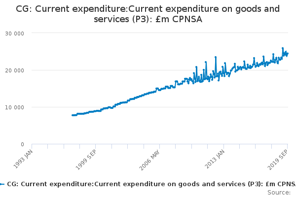 Download this time seriesCG: Current expenditure:Current expenditure on goods and services (P3): £m CPNSA