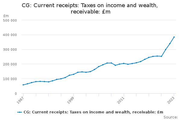 Download this time seriesCG: Current receipts: Taxes on income and wealth, receivable: £m