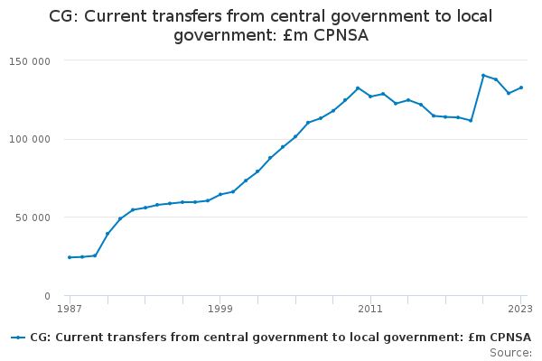 Download this time seriesCG: Current transfers from central government to local government: £m CPNSA