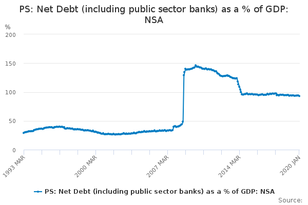 Download this time seriesPS: Net Debt (including public sector banks) as a % of GDP: NSA