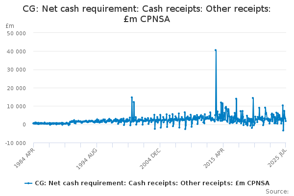 Download this time seriesCG: Net cash requirement: Cash receipts: Other receipts: £m CPNSA