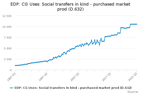 Download this time seriesEDP: CG Uses: Social transfers in kind - purchased market prod (D.632)
