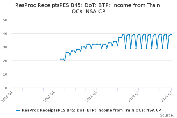Download this time seriesResProc ReceiptsPES B45: DoT: BTP: Income from Train OCs: NSA CP