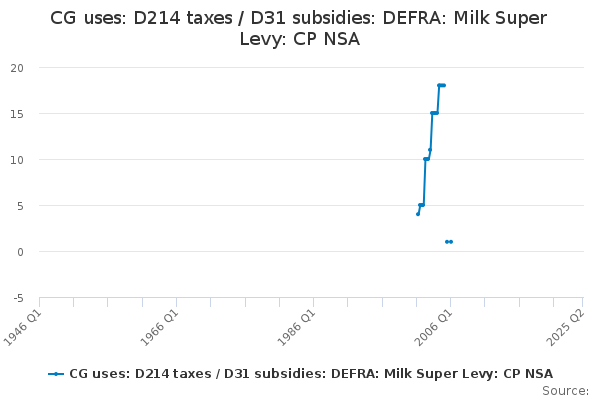 Download this time seriesCG uses: D214 taxes / D31 subsidies: DEFRA: Milk Super Levy: CP NSA