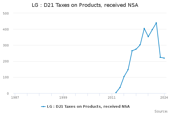 Download this time seriesLG : D21 Taxes on Products, received NSA