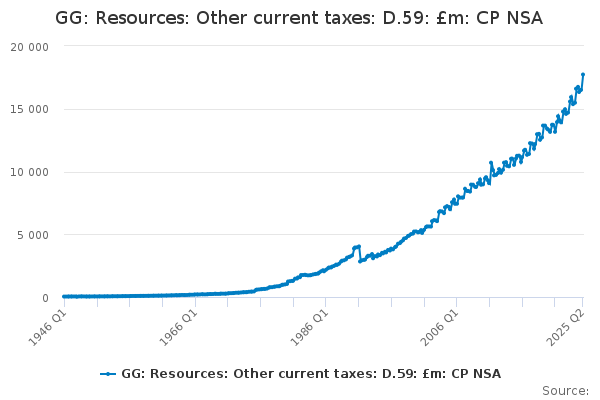 Download this time seriesGG: Resources: Other current taxes: D.59: £m: CP NSA