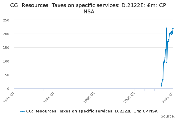 Download this time seriesCG: Resources: Taxes on specific services: D.2122E: £m: CP NSA