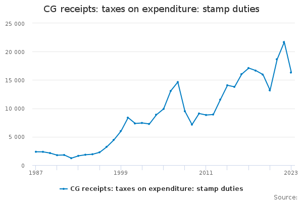 Download this time seriesCG receipts: taxes on expenditure: stamp duties