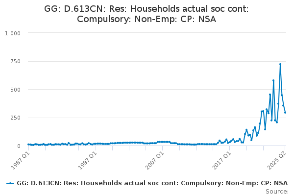 Download this time seriesGG: D.613CN: Res: Households actual soc cont: Compulsory: Non-Emp: CP: NSA