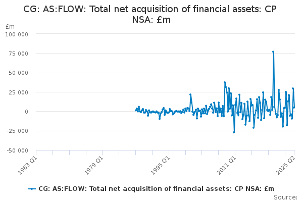 Download this time seriesCG: AS:FLOW: Total net acquisition of financial assets: CP NSA: £m