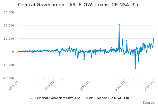 Download this time seriesCentral Government: AS: FLOW: Loans: CP NSA: £m