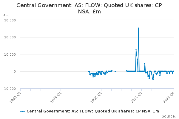 Download this time seriesCentral Government: AS: FLOW: Quoted UK shares: CP NSA: £m