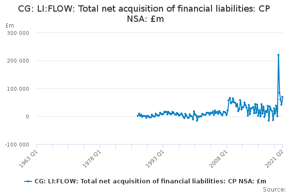 Download this time seriesCG: LI:FLOW: Total net acquisition of financial liabilities: CP NSA: £m