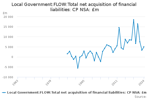 Download this time seriesLocal Government:FLOW:Total net acquisition of financial liabilities: CP NSA: £m
