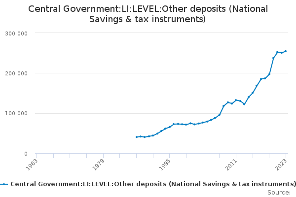 Download this time seriesCentral Government:LI:LEVEL:Other deposits (National Savings & tax instruments)