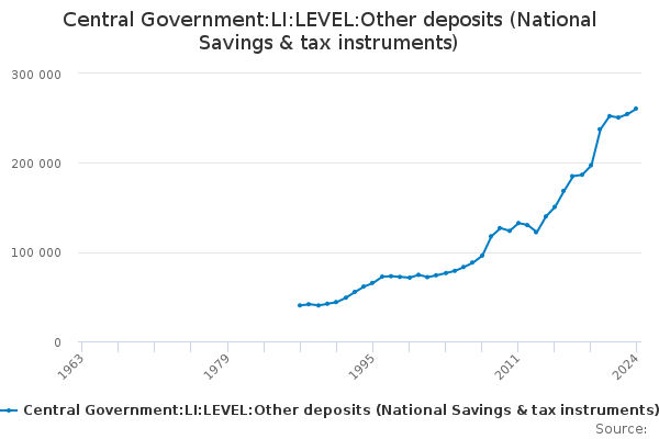 Download this time seriesCentral Government:LI:LEVEL:Other deposits (National Savings & tax instruments)