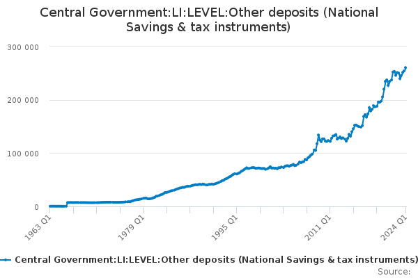 Download this time seriesCentral Government:LI:LEVEL:Other deposits (National Savings & tax instruments)