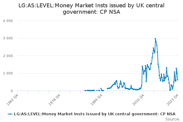 Download this time seriesLG:AS:LEVEL:Money Market Insts issued by UK central government: CP NSA