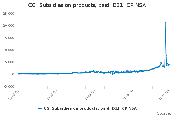 Download this time seriesCG: Subsidies on products, paid: D31: CP NSA