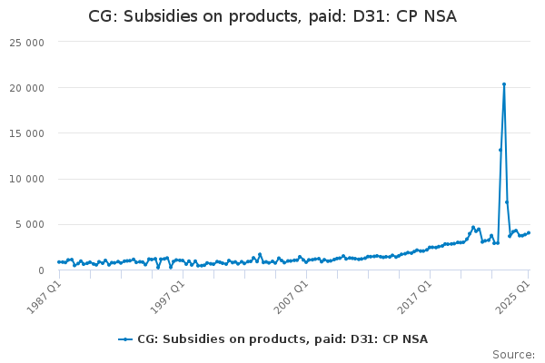 Download this time seriesCG: Subsidies on products, paid: D31: CP NSA
