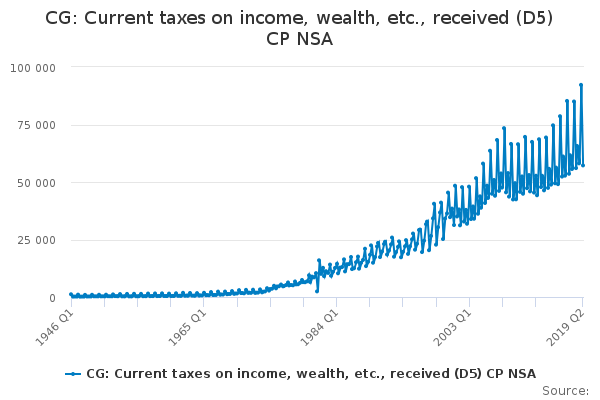 Download this time seriesCG: Current taxes on income, wealth, etc., received (D5) CP NSA