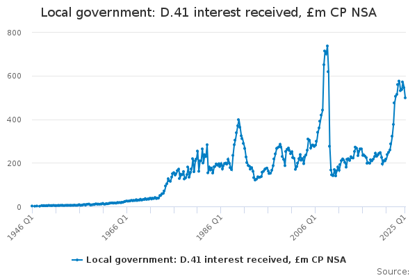 Download this time seriesLocal government: D.41 interest received, £m CP NSA