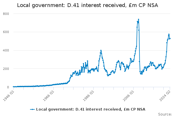 Download this time seriesLocal government: D.41 interest received, £m CP NSA