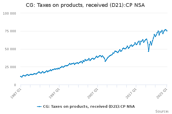 Download this time seriesCG: Taxes on products, received (D21):CP NSA