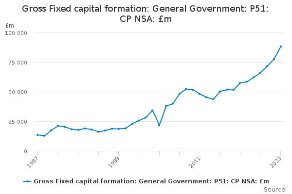 Download this time seriesGross Fixed capital formation: General Government: P51: CP NSA: £m