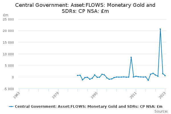 Download this time seriesCentral Government: Asset:FLOWS: Monetary Gold and SDRs: CP NSA: £m