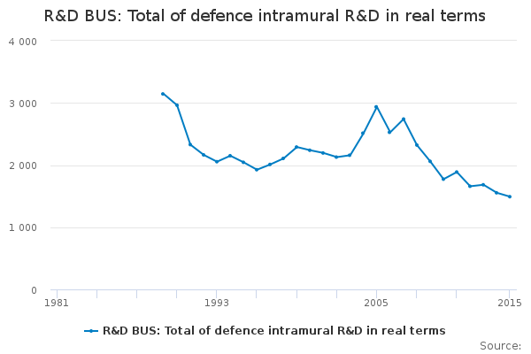Download this time seriesR&D BUS: Total of defence intramural R&D in real terms