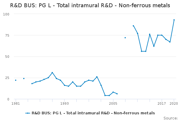 Download this time seriesR&D BUS: PG L - Total intramural R&D - Non-ferrous metals