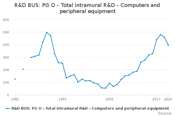 Download this time seriesR&D BUS: PG O - Total intramural R&D - Computers and peripheral equipment