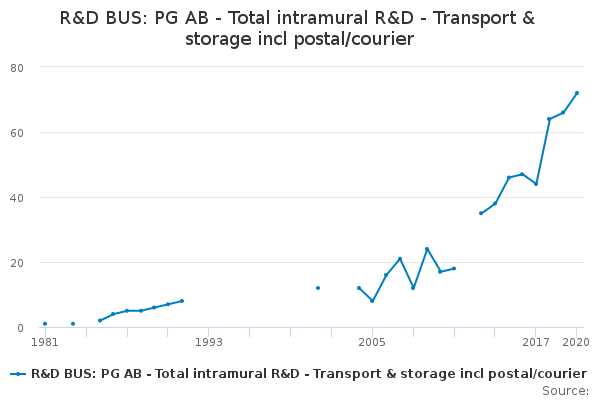 Download this time seriesR&D BUS: PG AB - Total intramural R&D - Transport & storage incl postal/courier