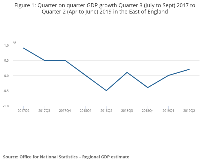 2. GDP growth in the East of England was 0.2% in Quarter 2 (Apr to June) 2019