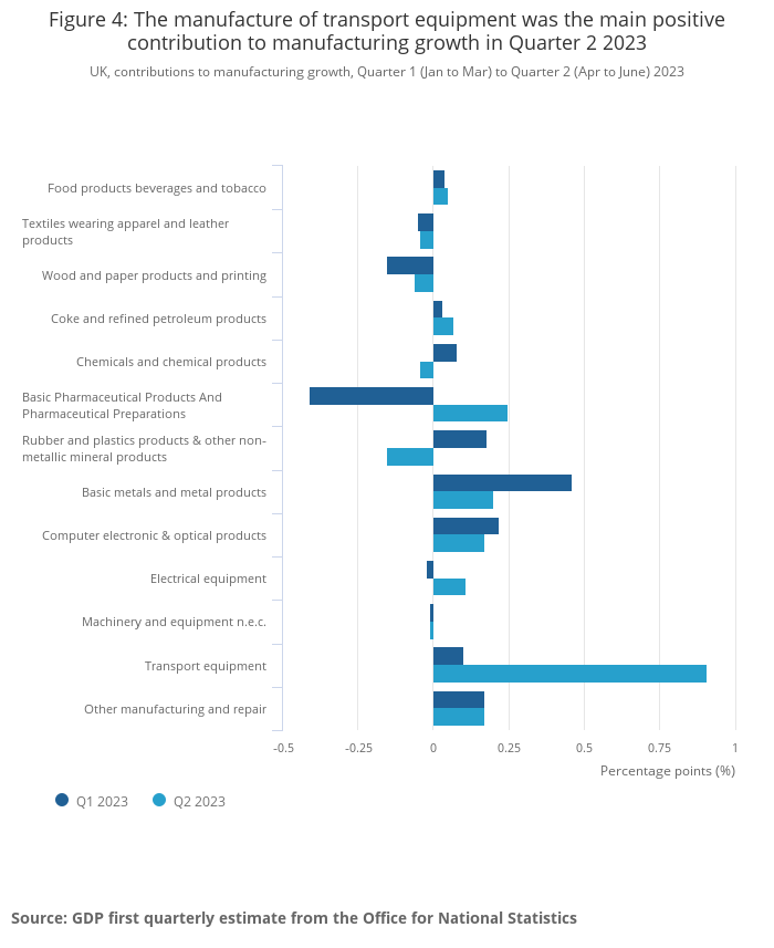 UK, contributions to manufacturing growth, Quarter 1 (Jan to Mar) to Quarter 2 (Apr to June) 2023