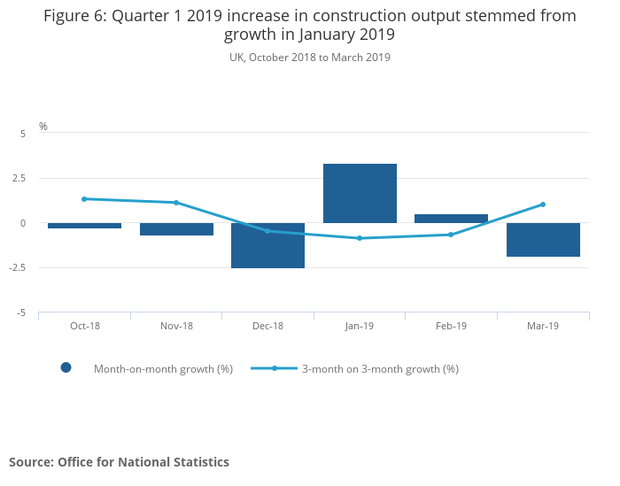 Download this chart Figure 6: Quarter 1 2019 increase in construction output stemmed from growth in January 2019