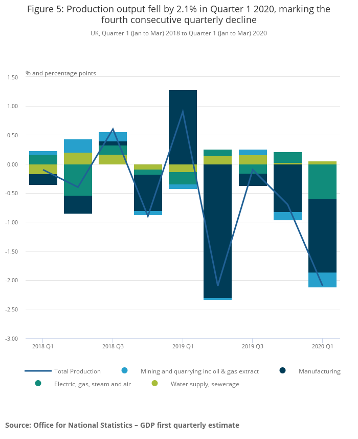 Figure 5: Production output fell by 2.1% in Quarter 1 2020, marking the fourth consecutive quarterly decline