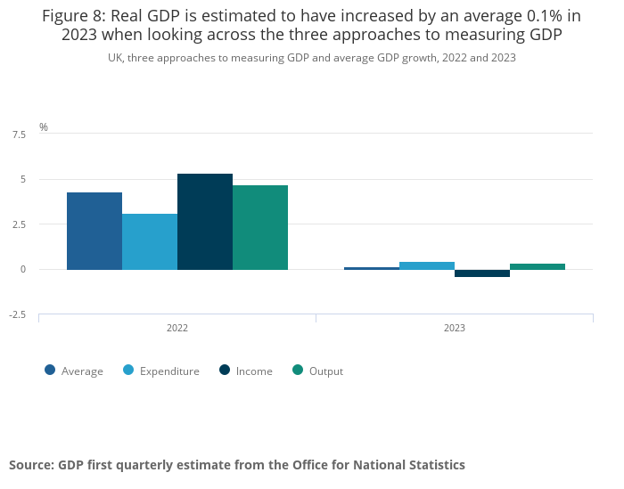 Figure 8: Real GDP is estimated to have increased by an average 0.1% in 2023 when looking across the three approaches to measuring GDP