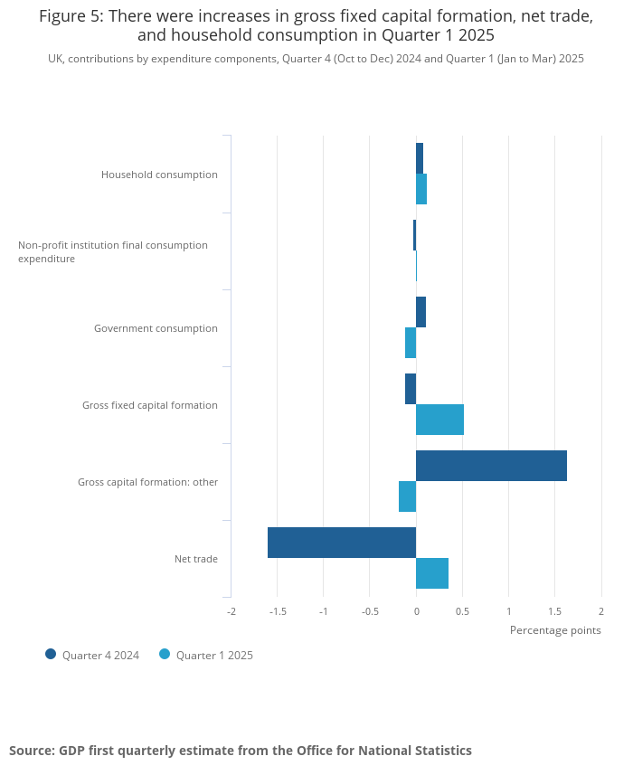 Figure 5: There were increases in gross fixed capital formation, net trade, and household consumption in Quarter 1 2025
