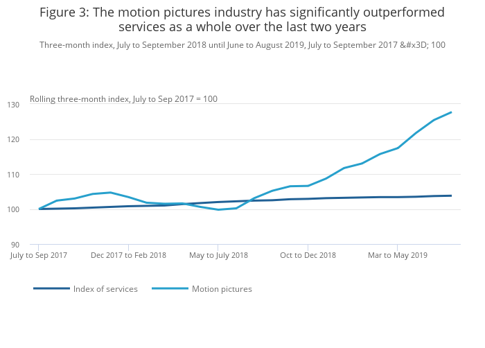 Download this chart Figure 3: The motion pictures industry has significantly outperformed services as a whole over the last two years