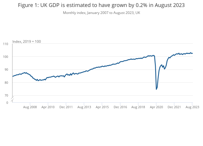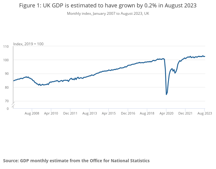 Figure 1: UK GDP is estimated to have grown by 0.2% in August 2023