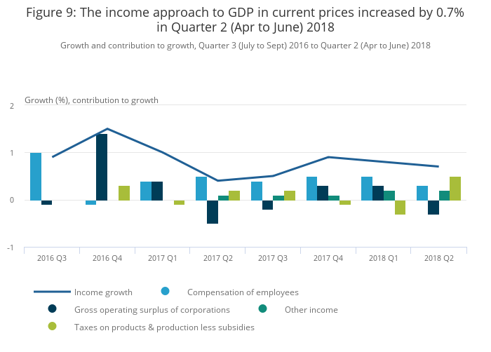 Download this chart Figure 9: The income approach to GDP in current prices increased by 0.7% in Quarter 2 (Apr to June) 2018