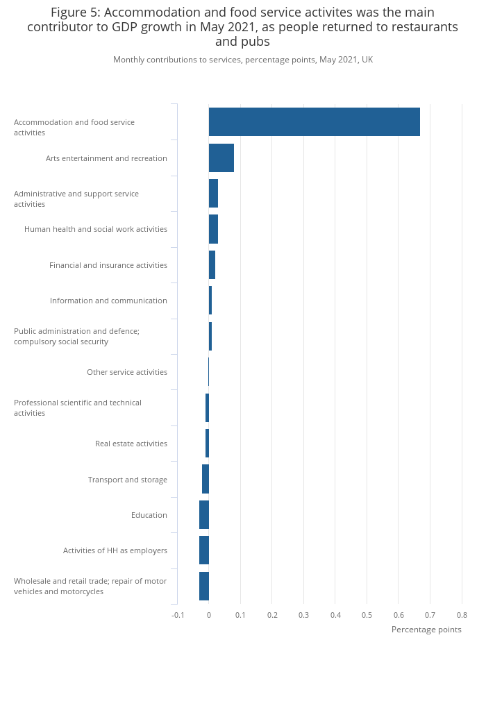 Figure 5: Accommodation and food service activites was the main contributor to GDP growth in May 2021, as people returned to restaurants and pubs