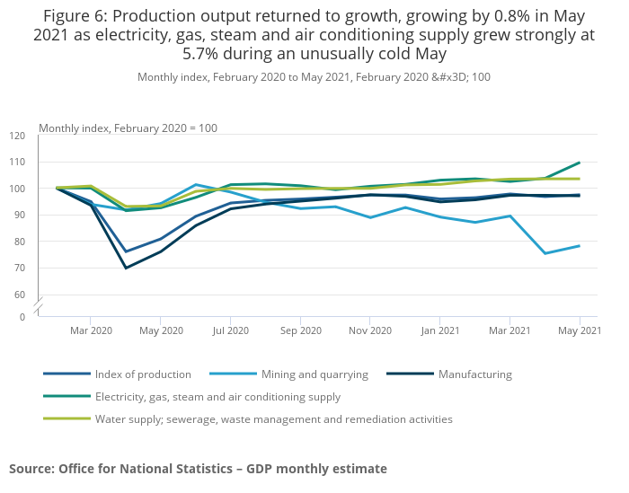 - Index of Production, UK: May 2021
