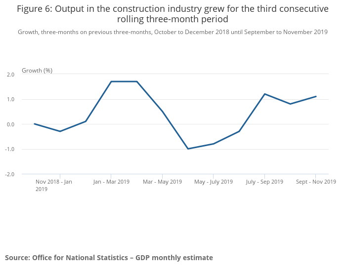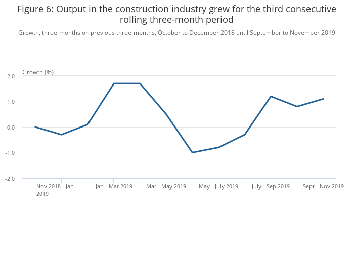 - Growth in the construction sector was 1.1% in the three months to November 2019