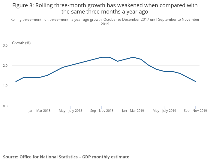 1. UK GDP grew by 0.1% in the three months to November 2019