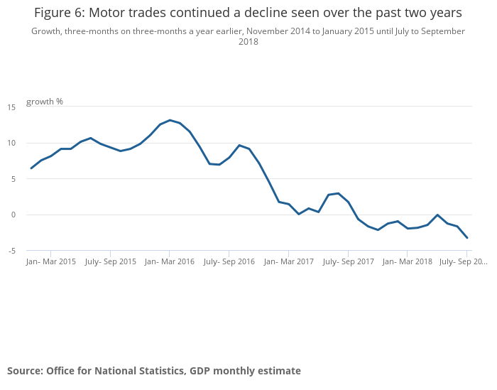 Download this chart Figure 6: Motor trades continued a decline seen over the past two years